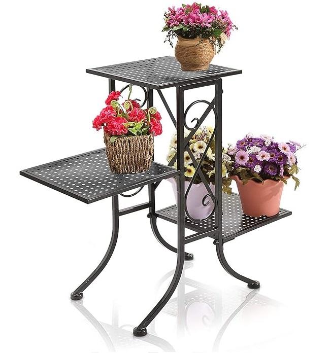 Flower Pot Stand Plant Shelves with 6 Levels and 2 Hooks 150 cm High Plant Stand Flower Shelf for Indoor Balcony Floor Rack