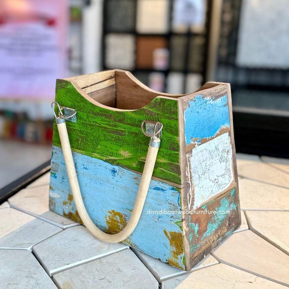 Flower Pots / Flower Bag Reclaimed Old Boat Wood Original Color Home Garden Outdoor Deco Planter Cekung Rattan/Mendong Medium