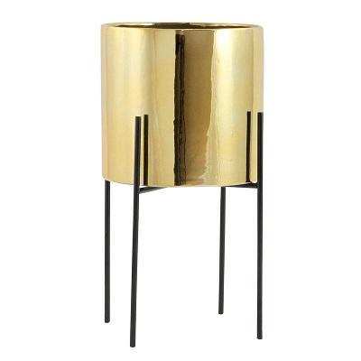Flower Pots Metal Planters for Home Garden Decorations Galvanised Polished Planter With Stands for Home Garden
