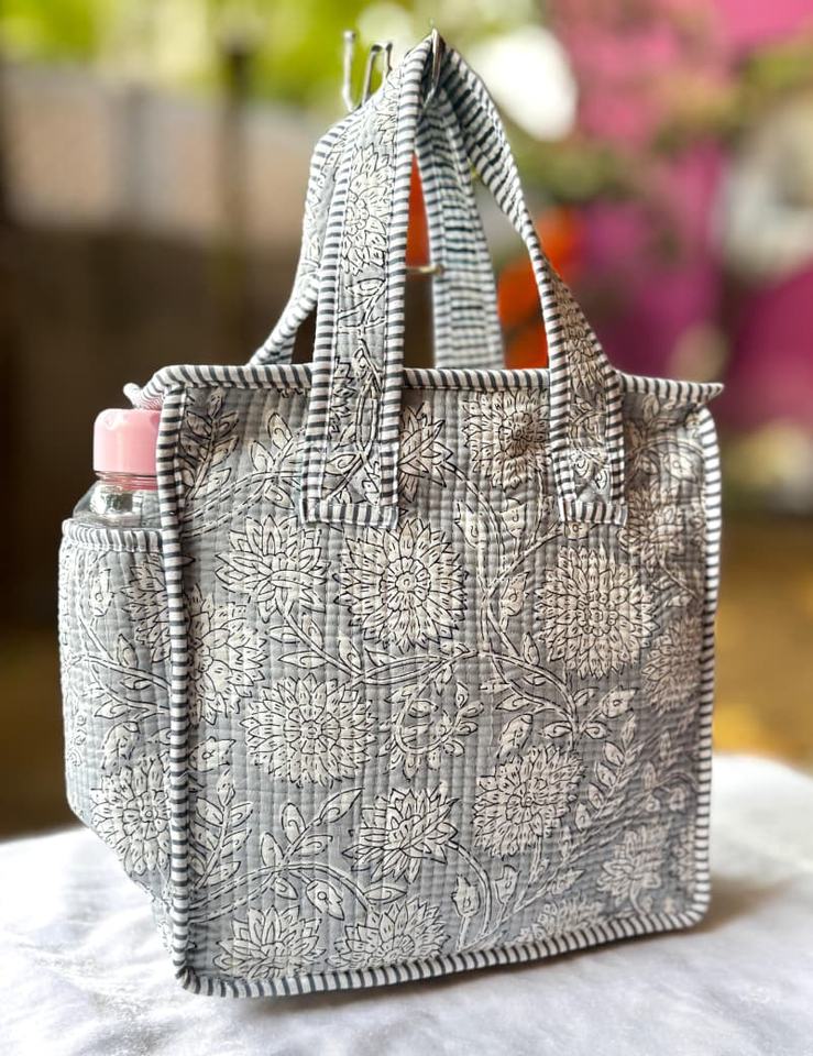 Flower Printed Large Shoulder Bag Fashion Custom Pattern Canvas Shopping Handmade Cotton Quilted Boho Style Tote Bag for Women