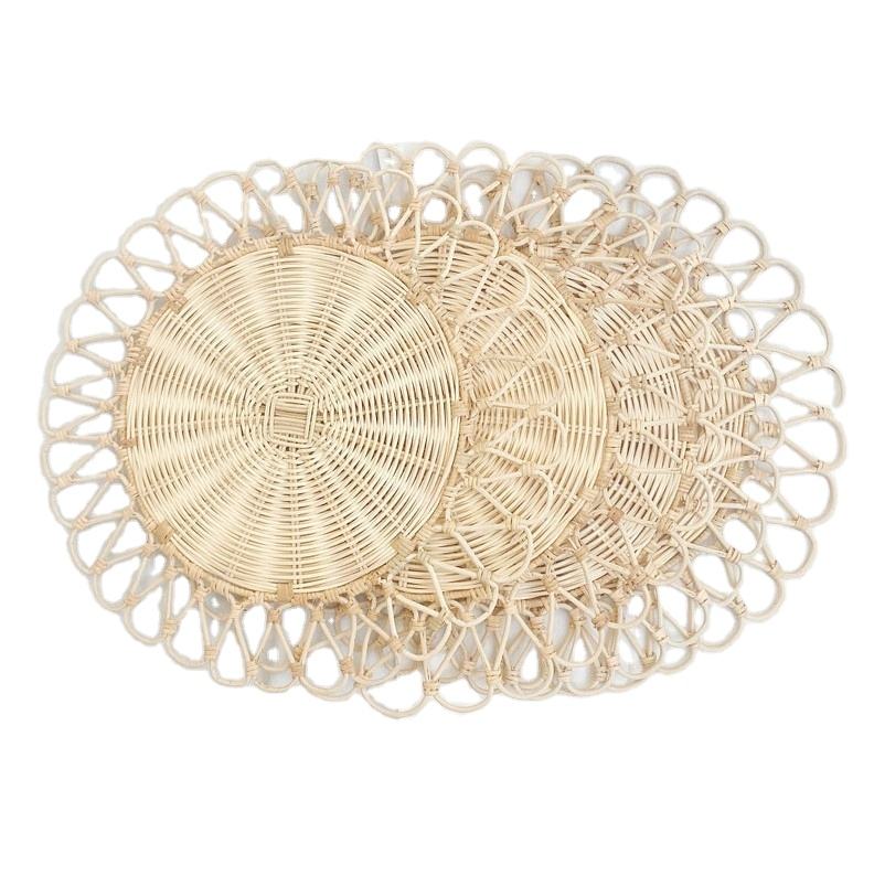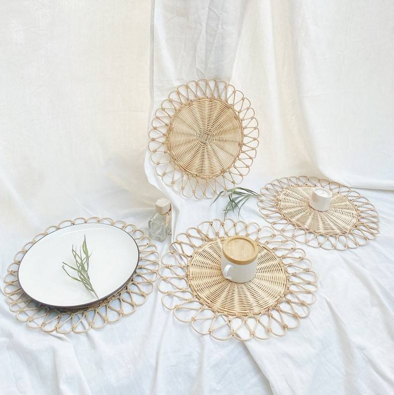 Name:Flower Round Rattan Placemat, Handwoven Natural Placemat