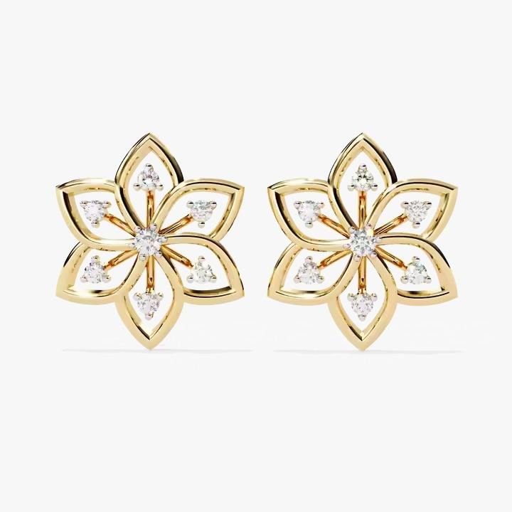 Flower Shape Round Cut Diamond Stud Earrings Crystal Pave Earrings Fine Jewelry Earring Available in Bulk Quantity