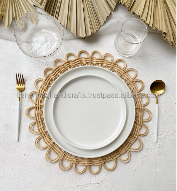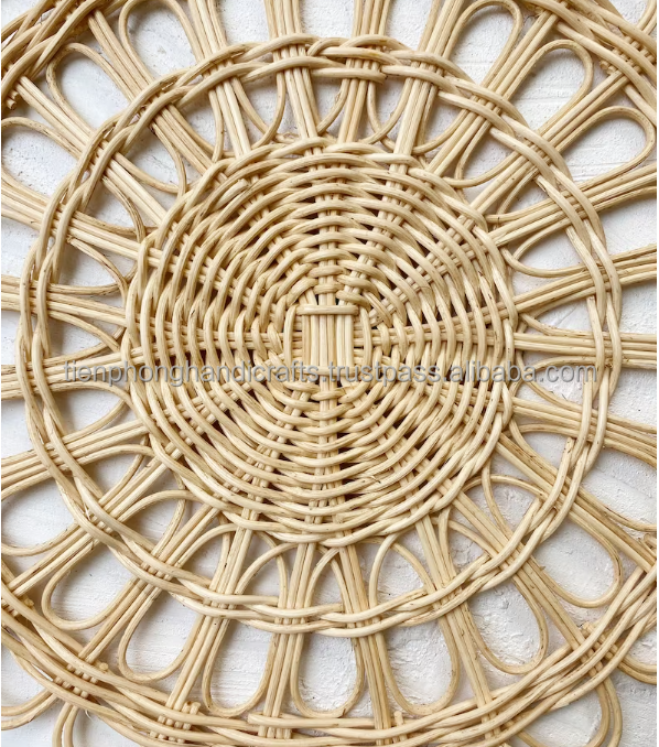 Flower Shape Round Rattan Placemat Diameter 36cm | Natural Rattan Placemat for Home Hotel Restaurant Coffee Shop