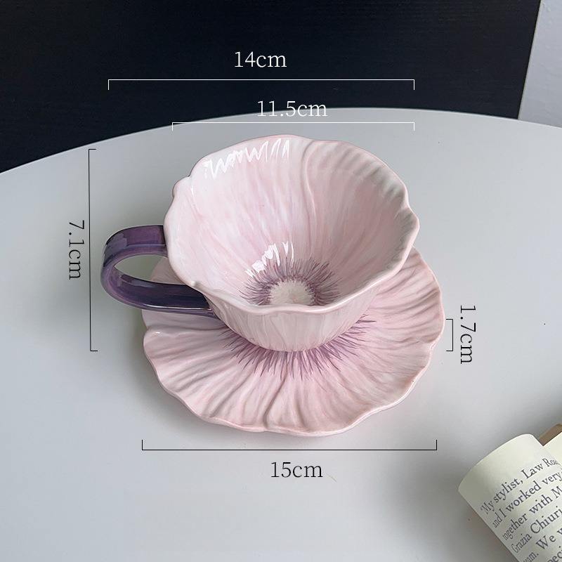 Flower Shaped Ceramic Teacup and Saucer Set Handmade Coffee Cup & Saucer for Tea/Coffee