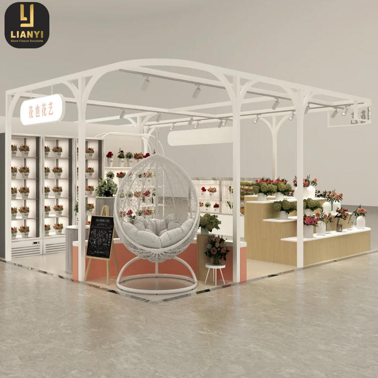 Flower Shop Interior Design Furniture Flower Metal Buckets Display Racks for Flower Kiosk Store