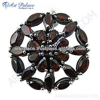 Flower Style Garnet Gemstone Silver Classical Brooch Women Light Luxury Hollow Luxury Full With Natural Garnet Gemstone Jewelry