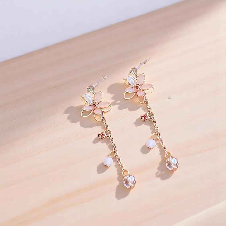 Flower Tassel Earrings Cherry Blossom Dangle Earrings 925 Sterling Silver 14k Gold Plated Crystal Gift For Her
