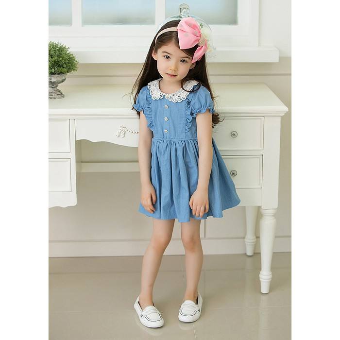Flower Vest Dress New Model Girl Evening Dresses for Veiled Girls' Jeans Blue Dresses