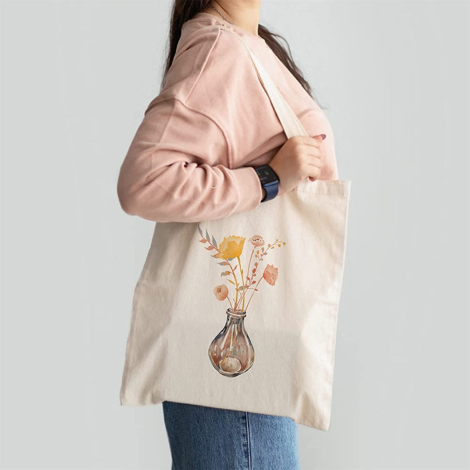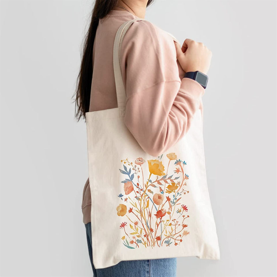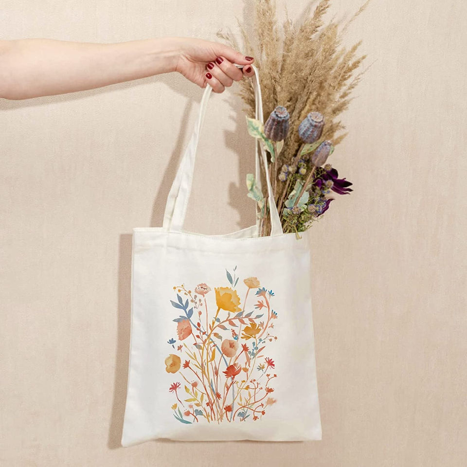 Flowers Aesthetic Cute Reusable Cotton Canvas Bag Open Closure Shopping Bag Wildflowers Eco Friendly Cotton Canvas Tote Bag