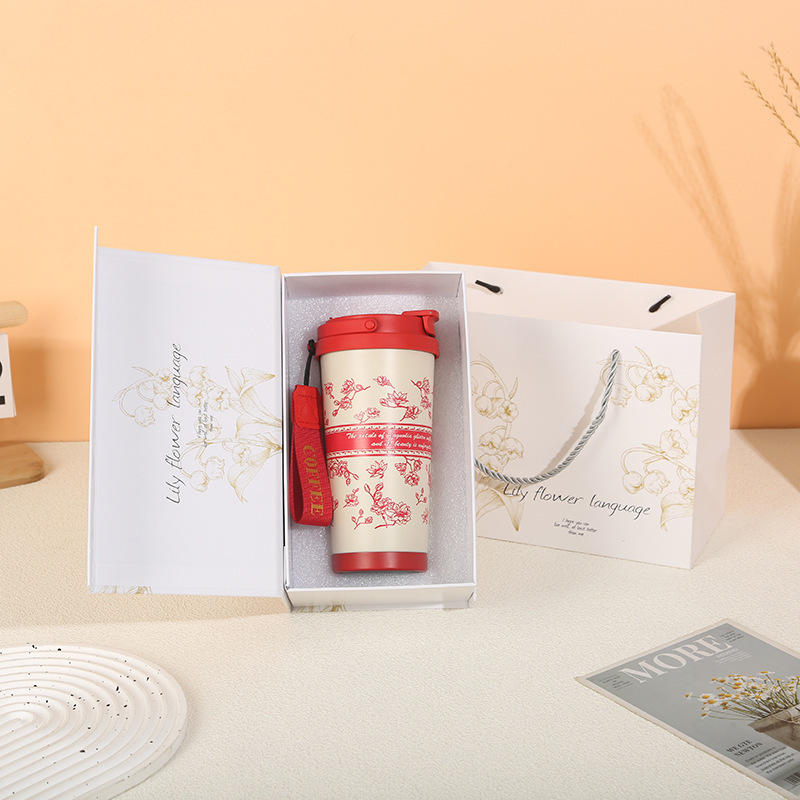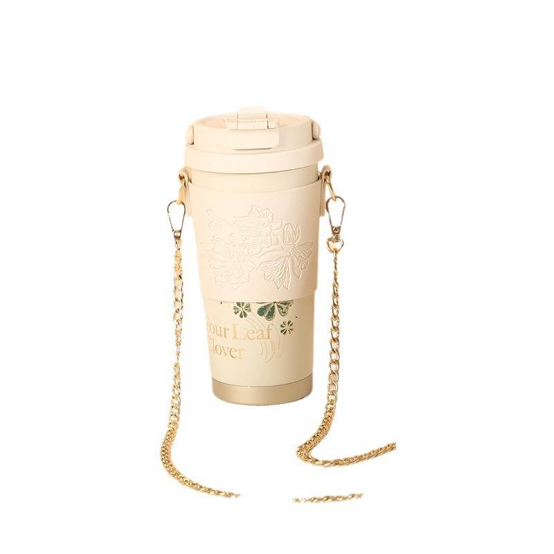 Flowers Bloom Insulated Coffee Mug With Chain Strap For Travel And Sports Use