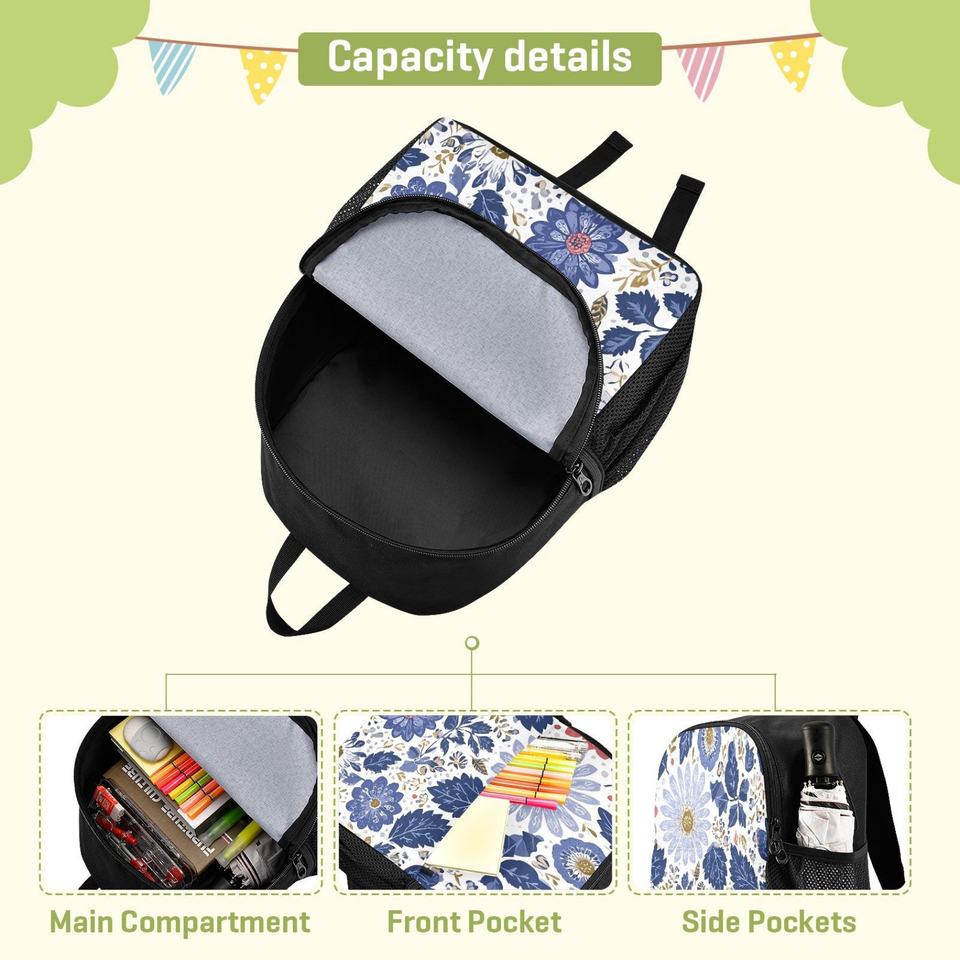 Flowers Design Simple Style Backpack with Zipper Large Capacity Unisex Backpack Waterproof Fashion Backpack