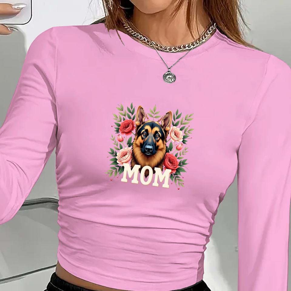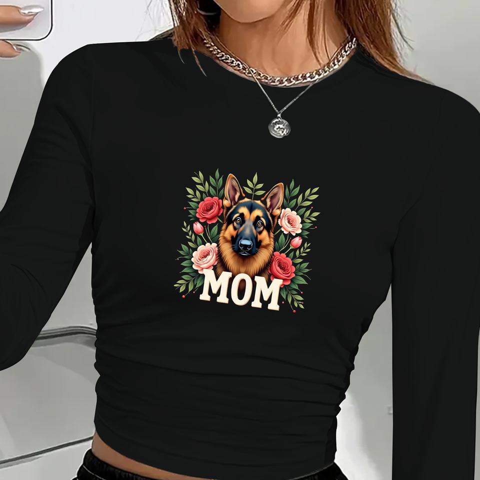 Flowers German Shepherd with floral design women's fashion long sleeve shirt