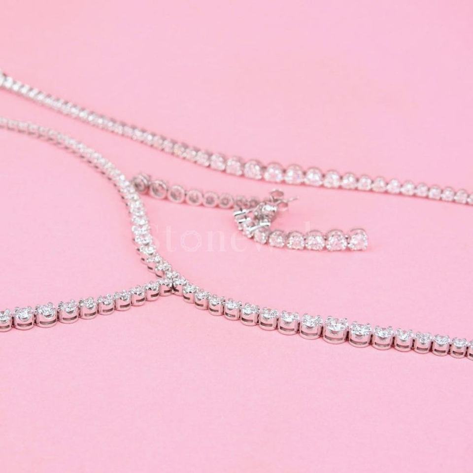 Model Number:Graduated Floating Diamond Tennis Necklace-Silver