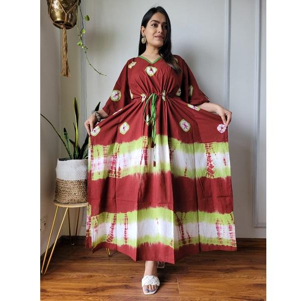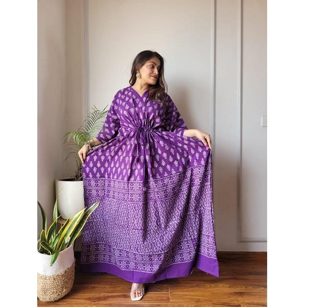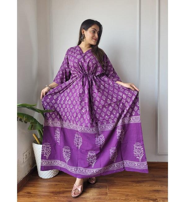 Flowy Hand-Block Printed Cotton Kaftan Soft Breathable Cotton Comfortable Summer Outfit With Ethnic Printed Design