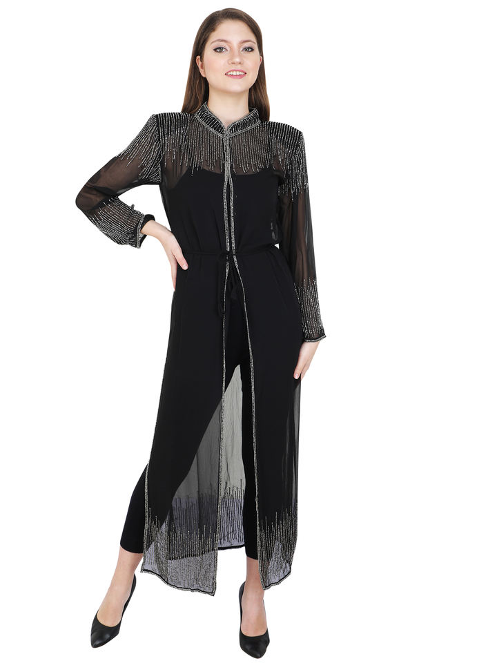 Flowy Hand-Embroidered Abaya Kaftan Woman Clothing Front Open Abaya Cardigan Coat Holidays Party Wear Wedding Celebration Jilbab