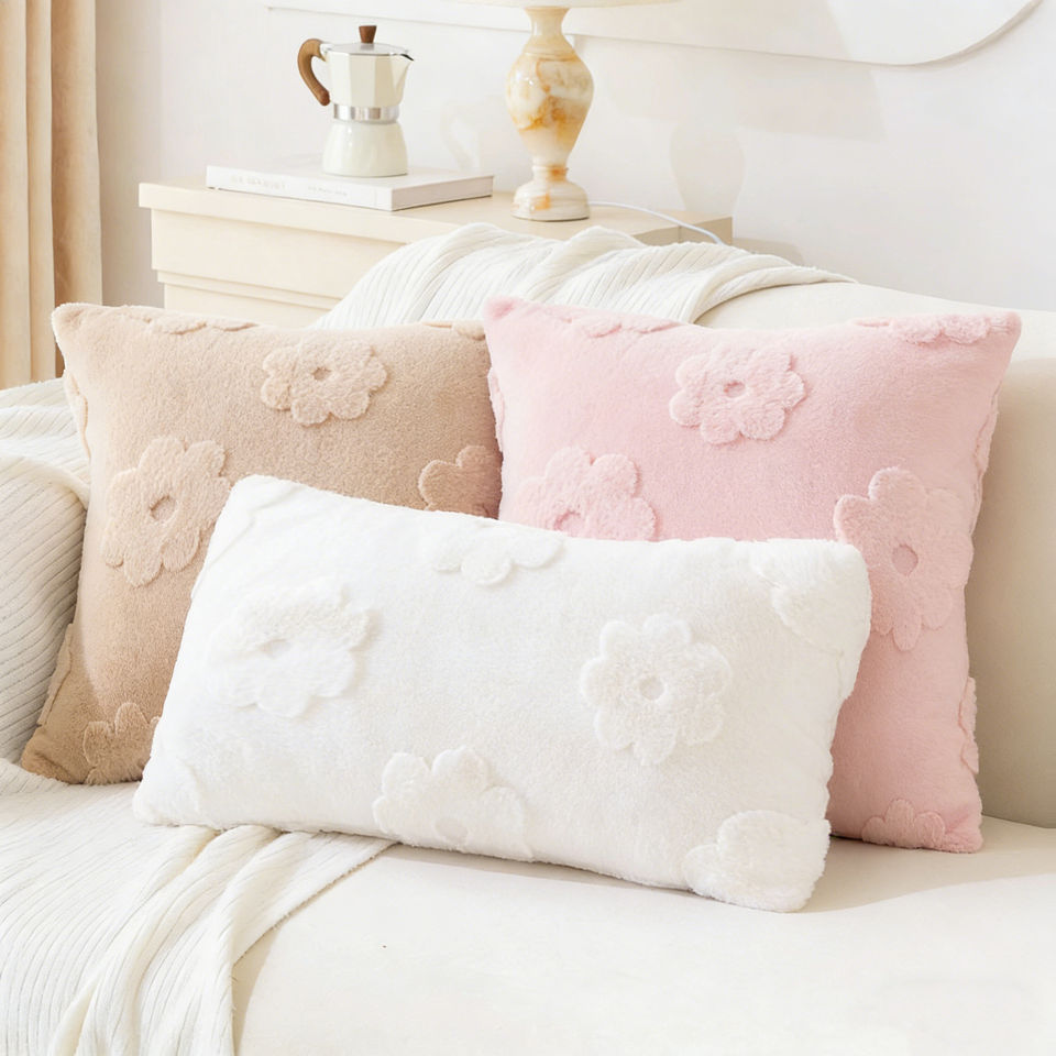 Fluffery White Polyester Foam Decorative Throw Pillow Floral Embroidered 18 X 18 / 45 X 45 cm Square Pattern Living Home Use