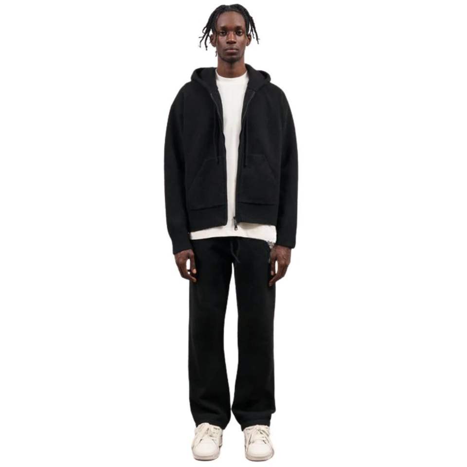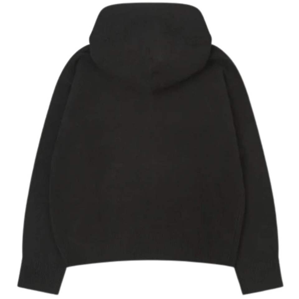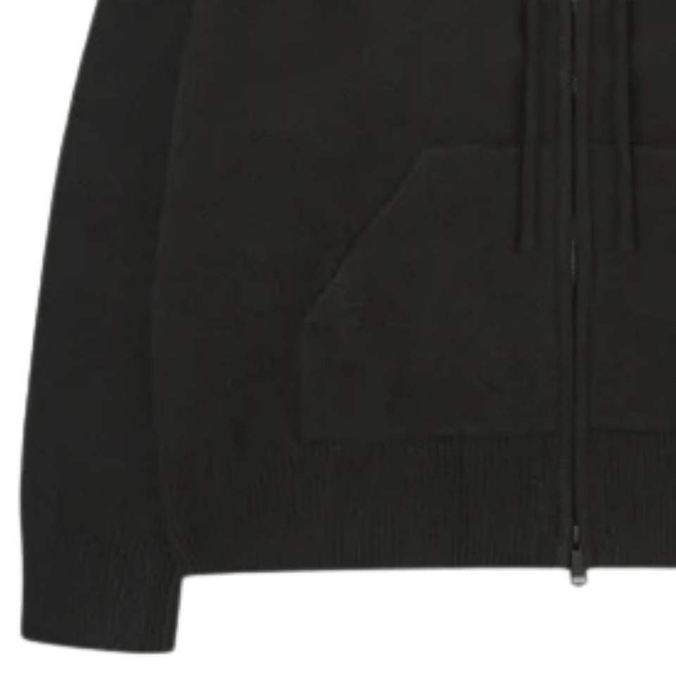 Fluffy Emblem Zip Through Knitted Hoodie for Men Cozy Stylish Black Hoodie with Front Pocket Premium Knit Hoodie with Emblem