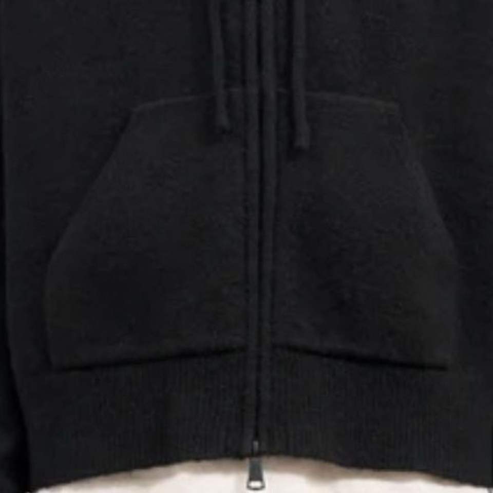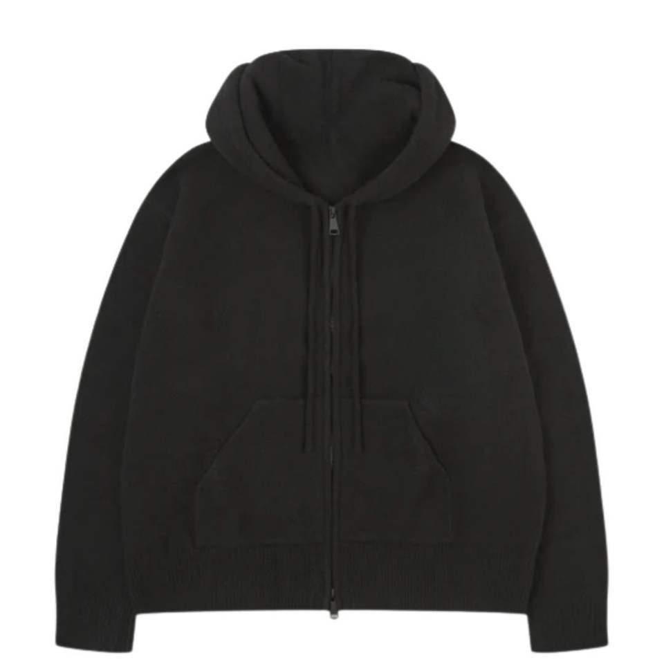 Fluffy Emblem Zip Through Knitted Hoodie for Men Cozy Stylish Black Hoodie with Front Pocket Premium Knit Hoodie with Emblem