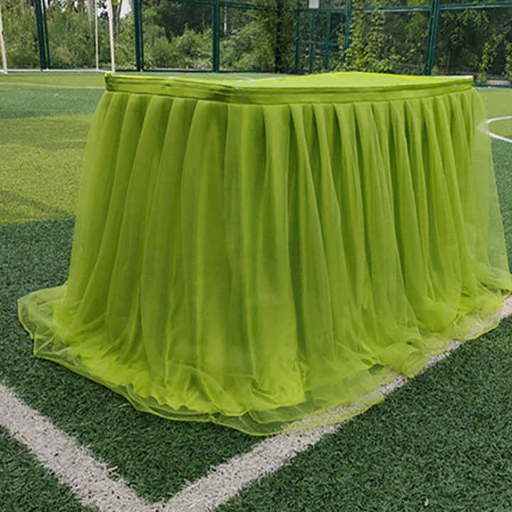 Fluffy Tutu Tulle Lace Skirt Yellow Reusable Table Skirt with Different Design for Wedding Party Banquet Birthday Celebration