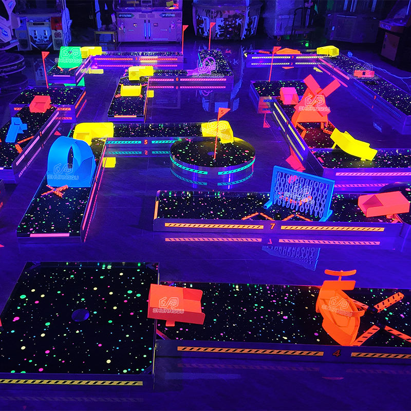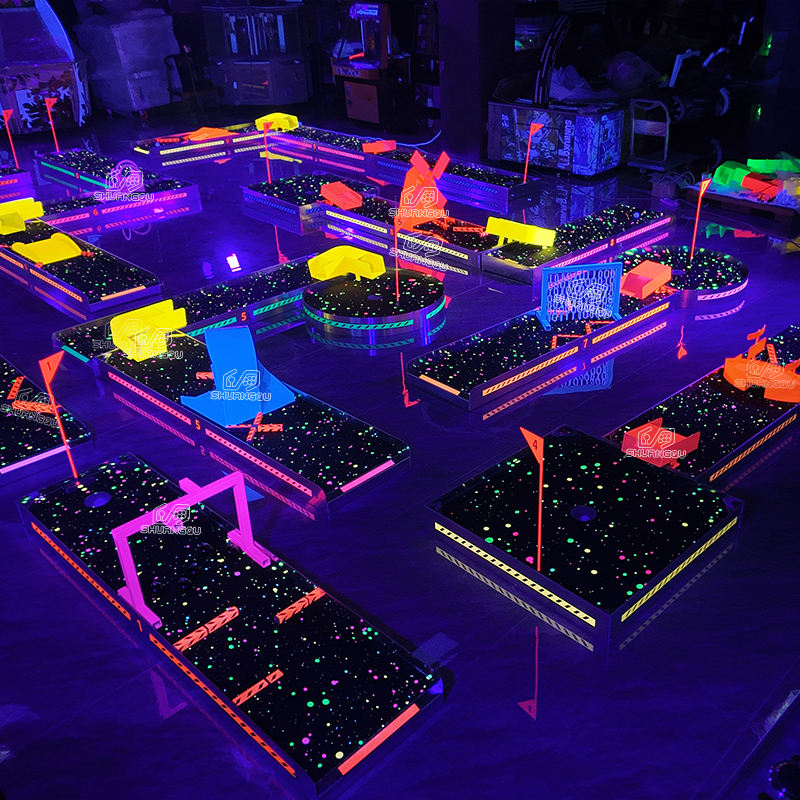 Fluorescent Mini Golf Rentals LED Glow Golf Simulator Rental for Events and Amusement Glow Indoor Golf Game Ball Kids Playground