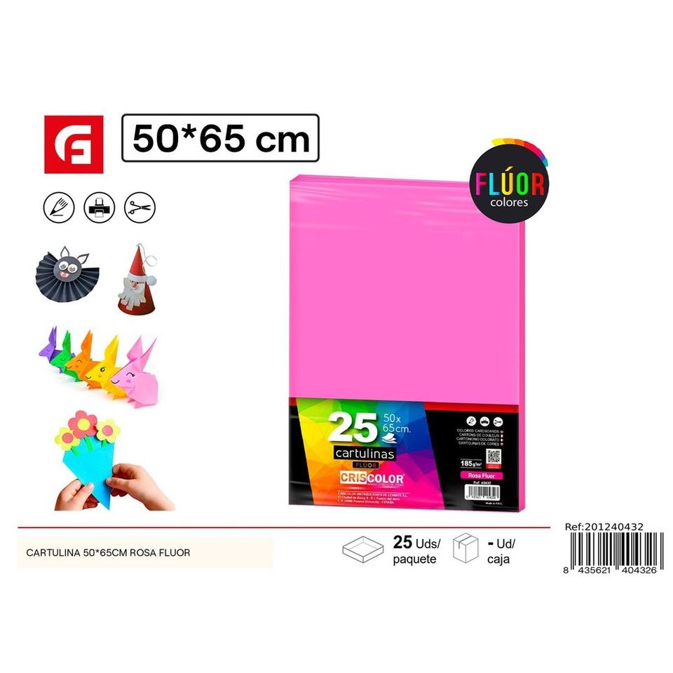Fluorescent pink cardboard 50x65cm - Crafts