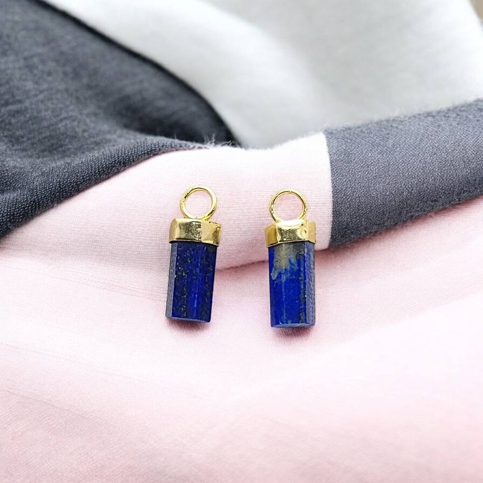 Gemstone 12x5mm Hexagonal Cylinder 925 Silver Gold Plated End Cap Pendant Handmade Gemstone Charms Bulk Wholesale Silver Jewelry