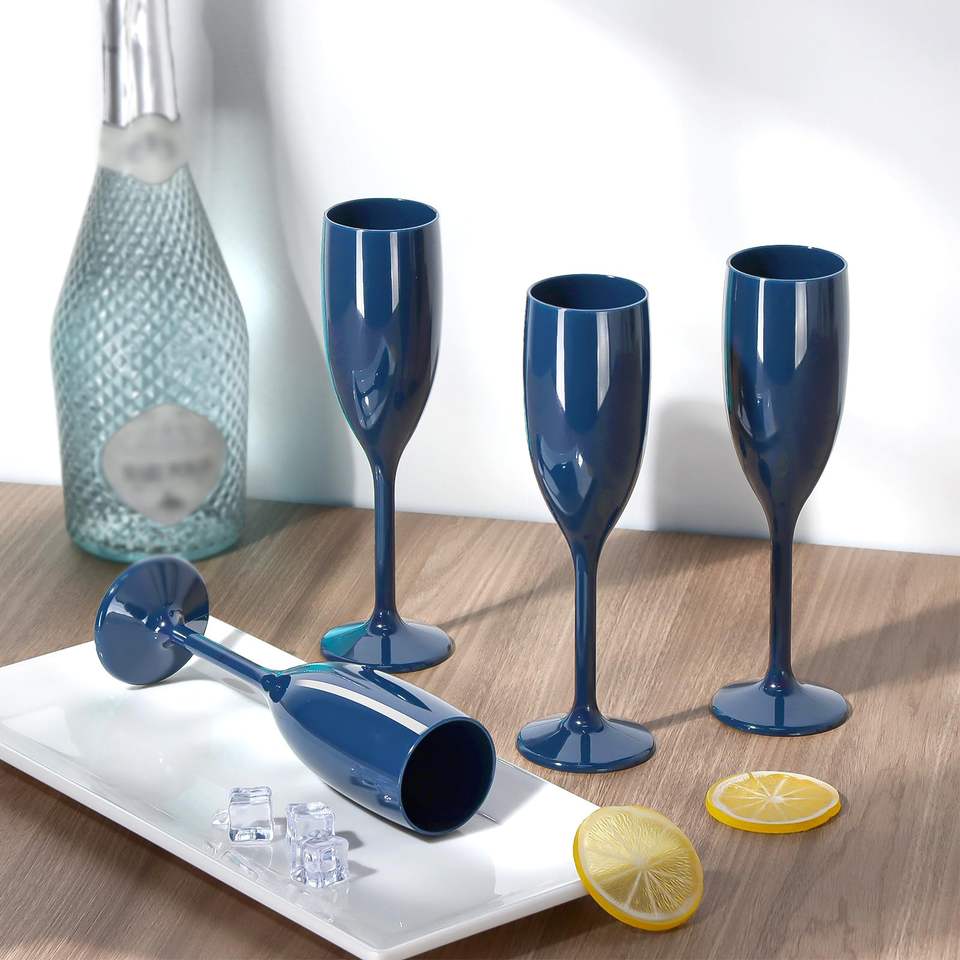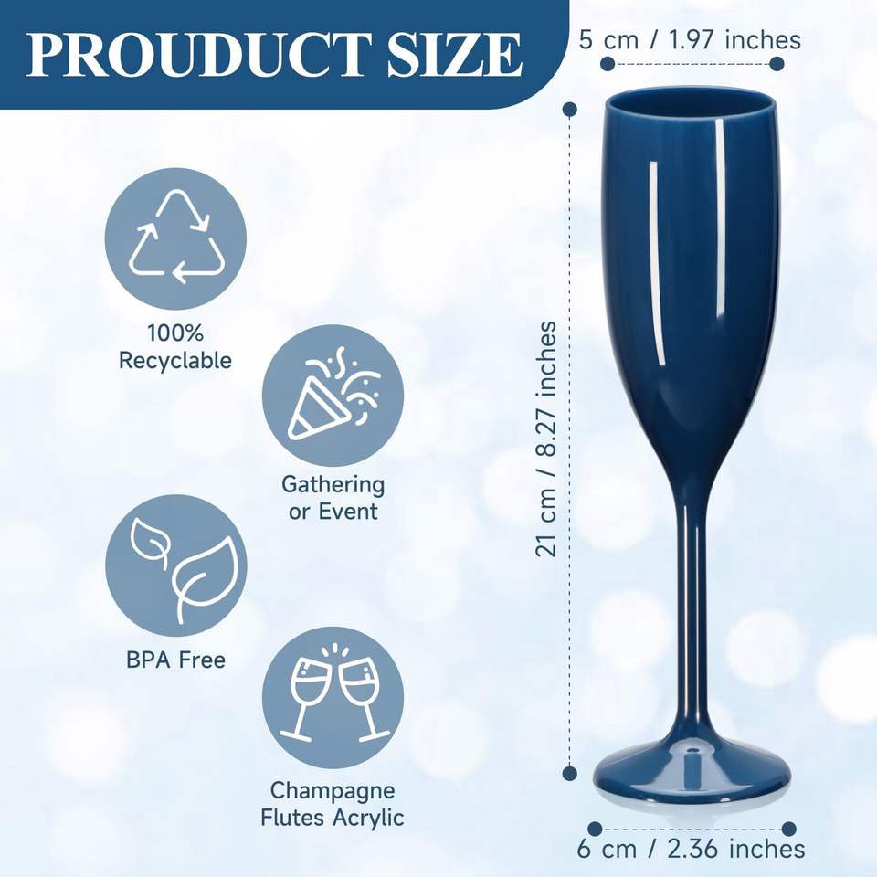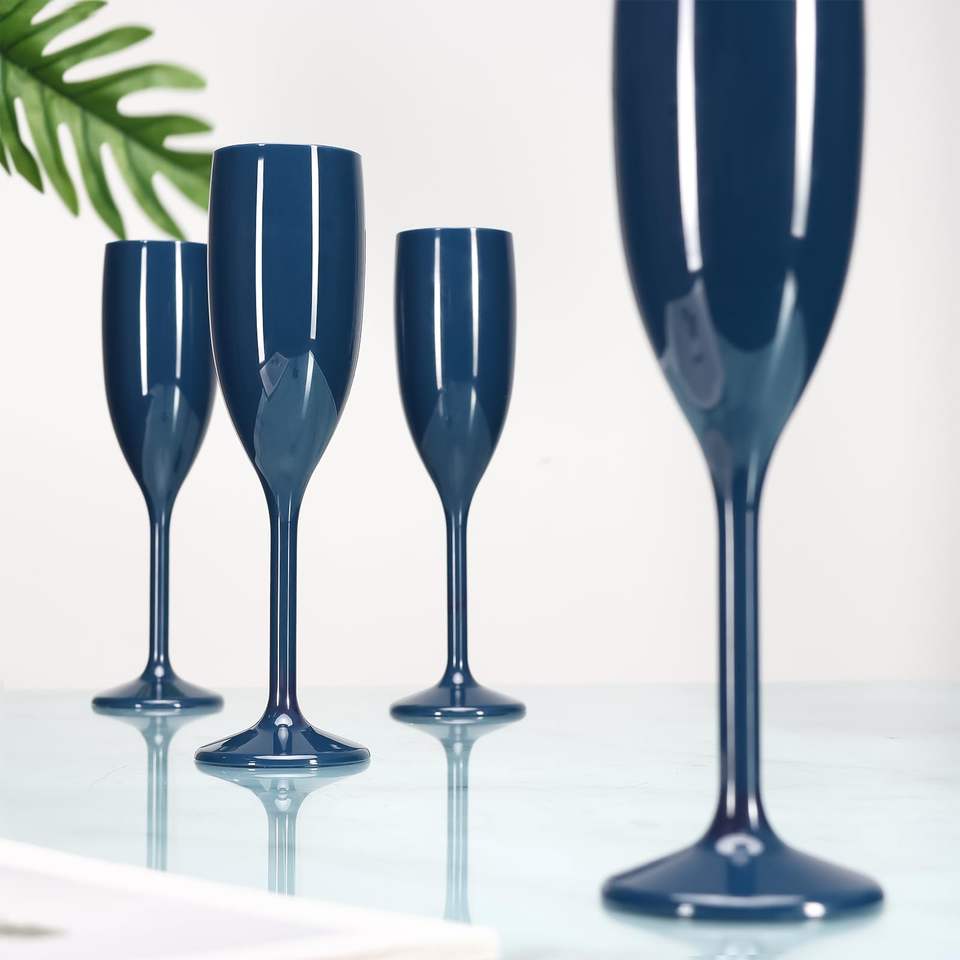 Flutes Bulk Dark Blue 6 oz Acrylic Goblet Wine Glasses Toasting Drinking Unbreakable Plastic High Stem Champagne Cups Goblet