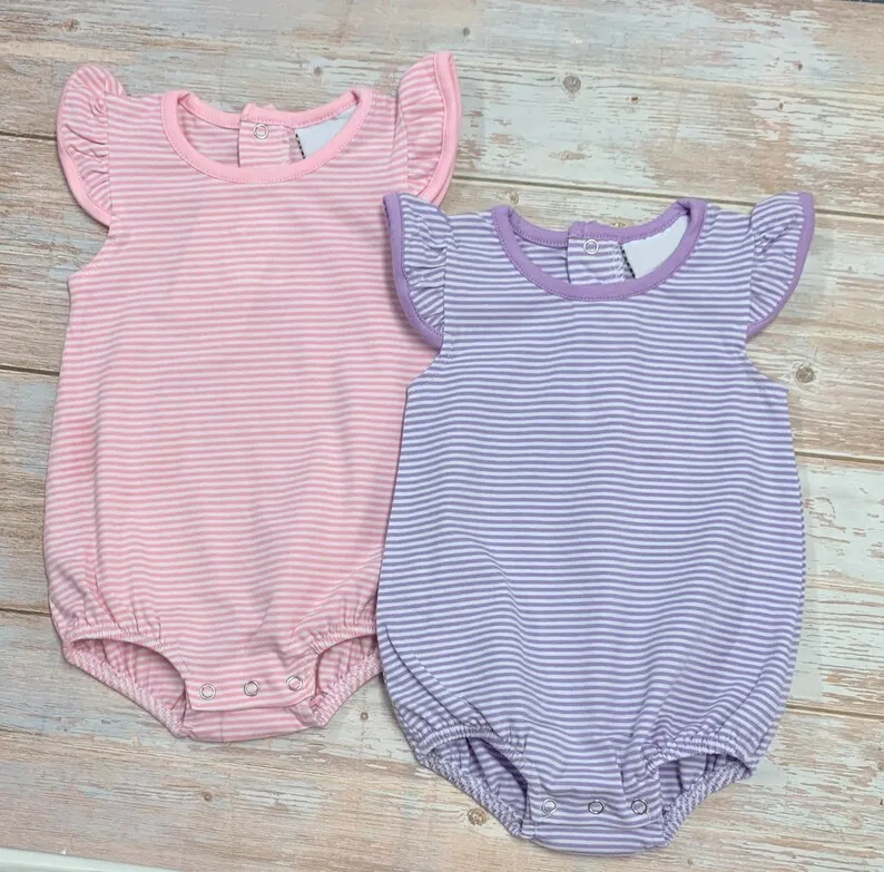 Flutter Sleeve pink Striped Cotton Newborn Baby Rompers Monogrammed Toddler Girl Summer Sunsuit Infant Baby Coming Home Outfit