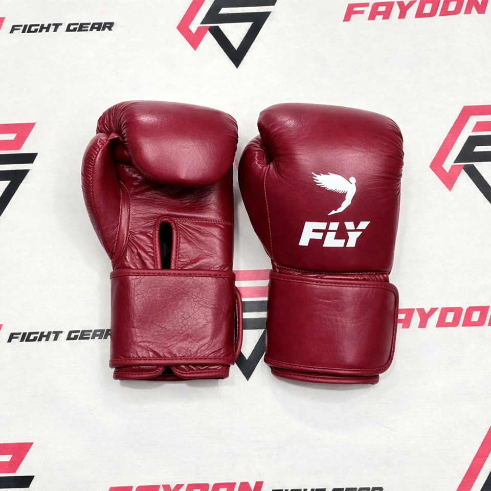 Fly Customized Black Strap Closure Adjustable Muay Thai Genuine Leather Boxing Gloves Kickboxing Sparring Boxing Gloves Sale