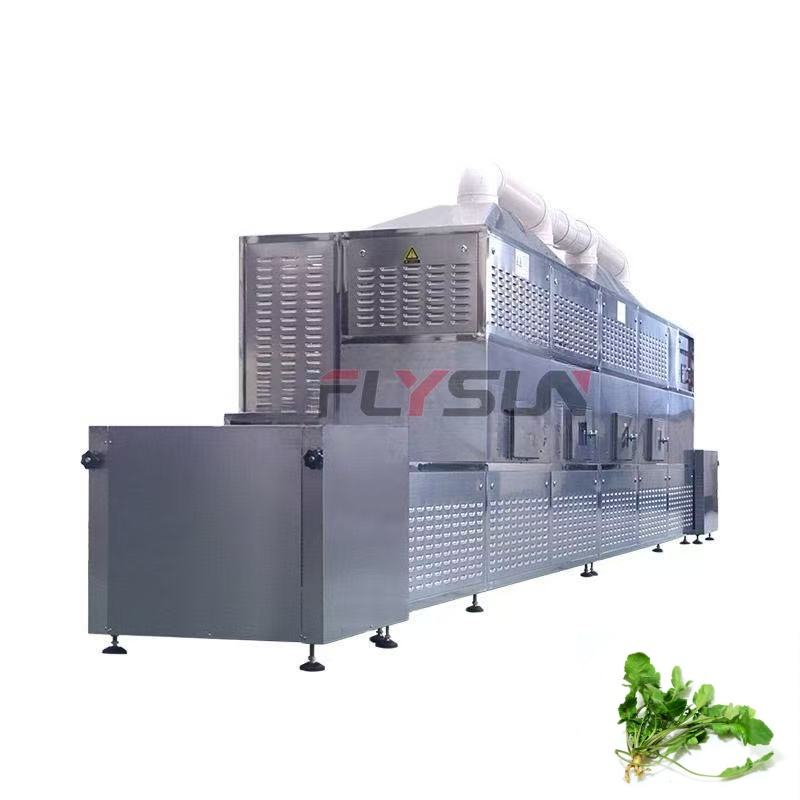 Flysun Microwave Tunnel Dryer for Leaves Herbs Conveyor Belt Sterilization Drying Machine Food Microwave Drying Machine