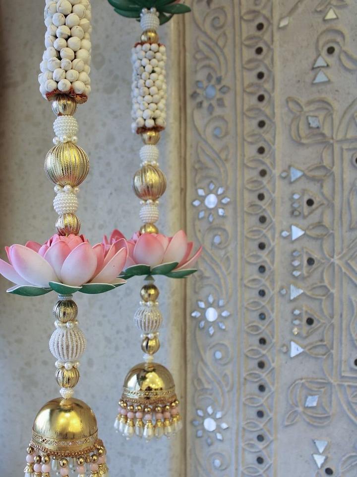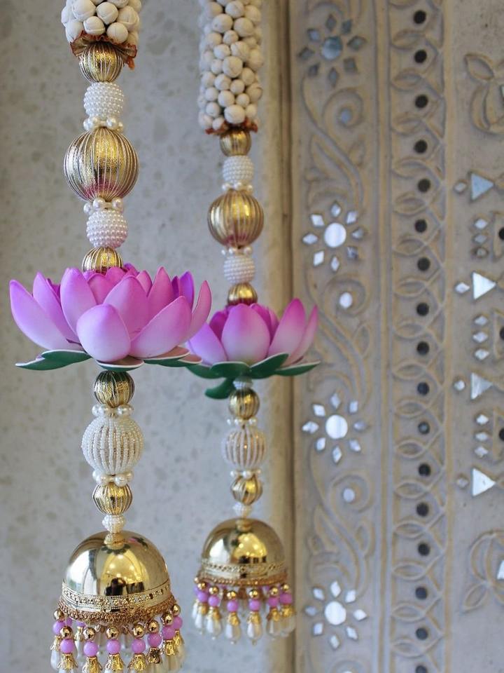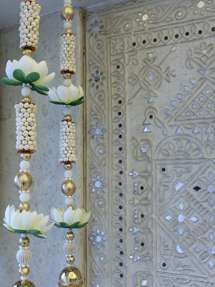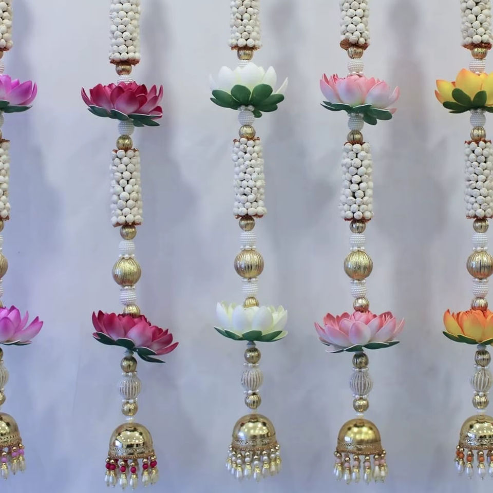 Foam Lotus Bead Hanging with Golden Bells, Mogra Buds Door Hanging , Wedding Pooja Decor, Ghungroo Floral Hanging Garland