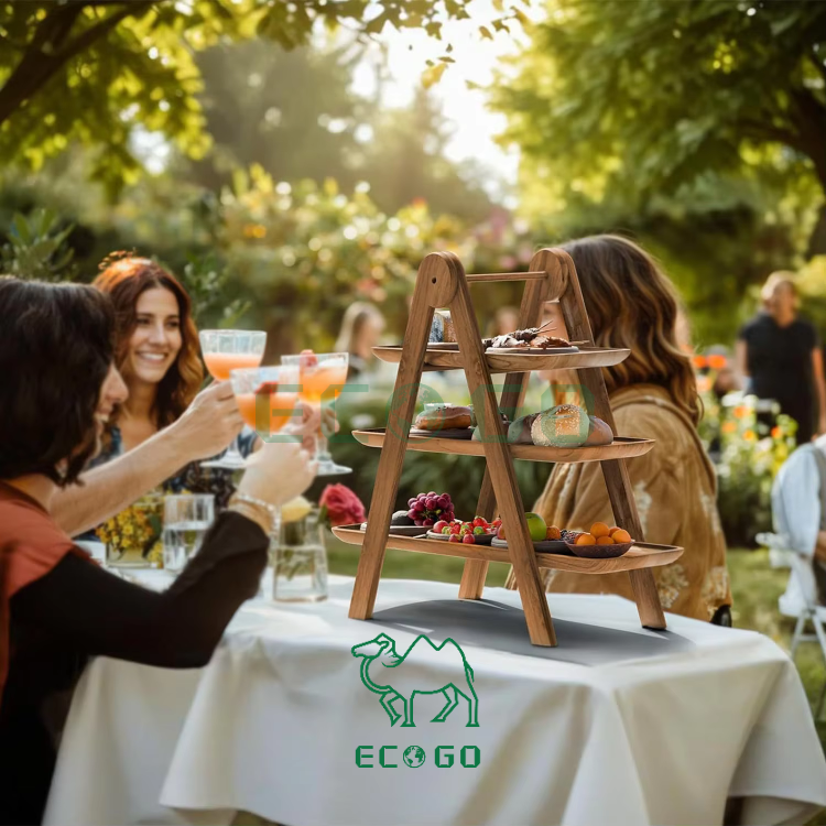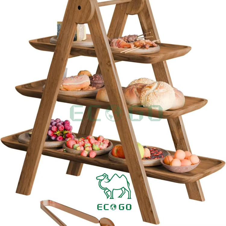Foldable 3 Tier Wooden Cake Display Stand Stackable Kitchen Family Gathering 3 Tier Detachable Cake Stand Serving Tray