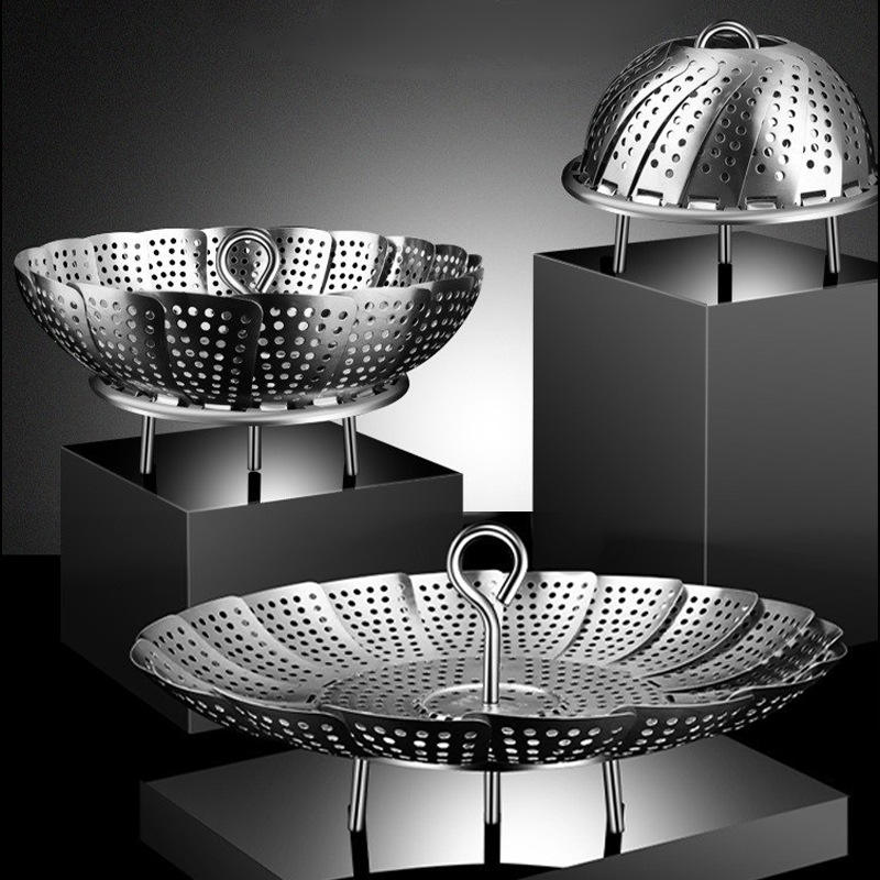 Foldable 304 Stainless Steel Steamer Rack Thickened Kitchen Multi Functional Telescopic Steamer Basket