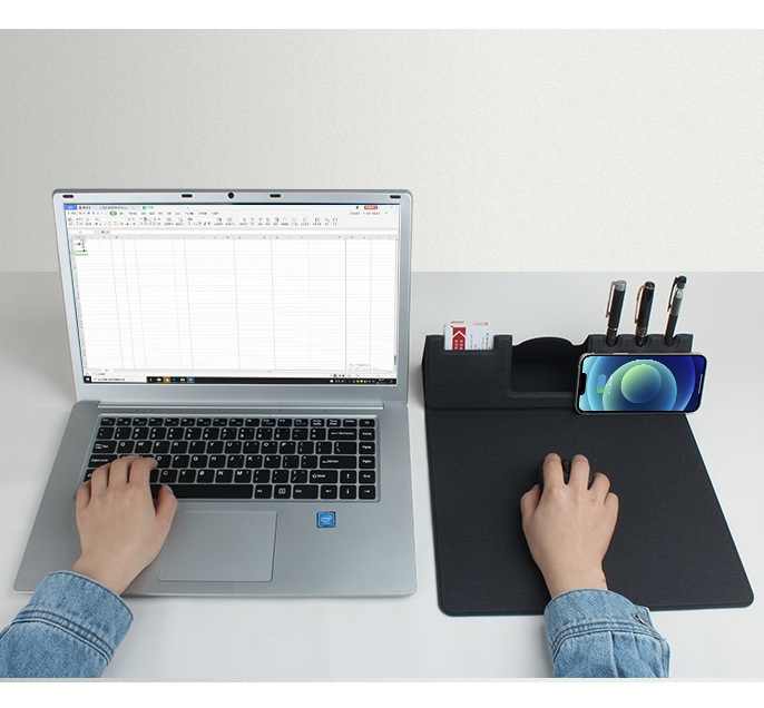 Foldable 4-in-1 Leather Wireless Charging Fast Charging Mouse Pad Led Logo Phone Stand Pen Holder Card Stand Durable Desk Mat