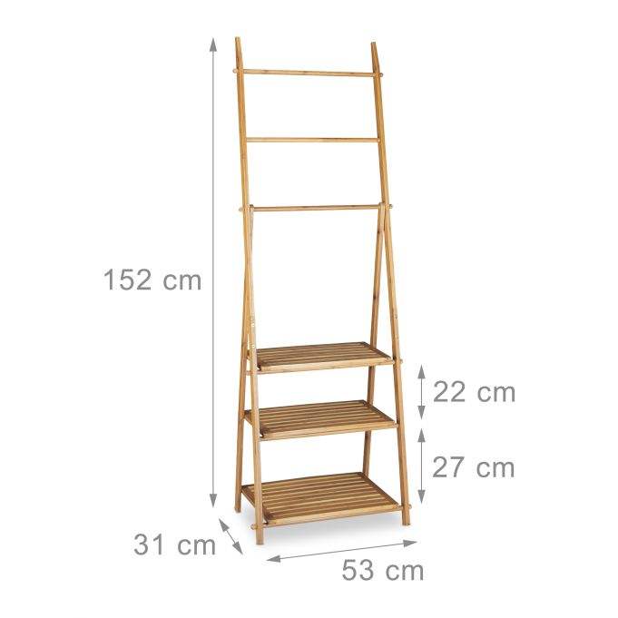 Foldable Bamboo Free-Standing Towel Rack Towel Holder Bamboo Ladder Towel Rack Stand Bamboo Towel Rack with 3 Shelves 3 Rails