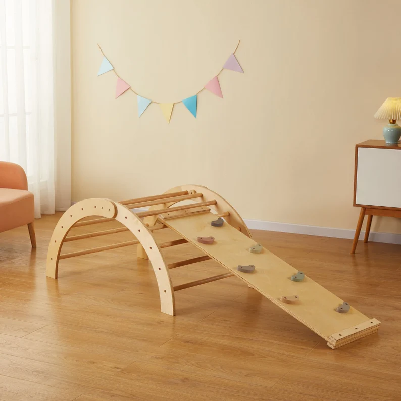 Foldable Bed Climbing Arch Wooden Climbing Frame for Babies and Kids Montessori Contemporary Design
