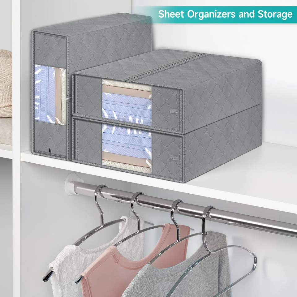 Foldable Bed Sheet Organizer Storage Bins Sheet Set Organizer Linen Closet With Clear PVC Sheet Storage for Bedding Organizer