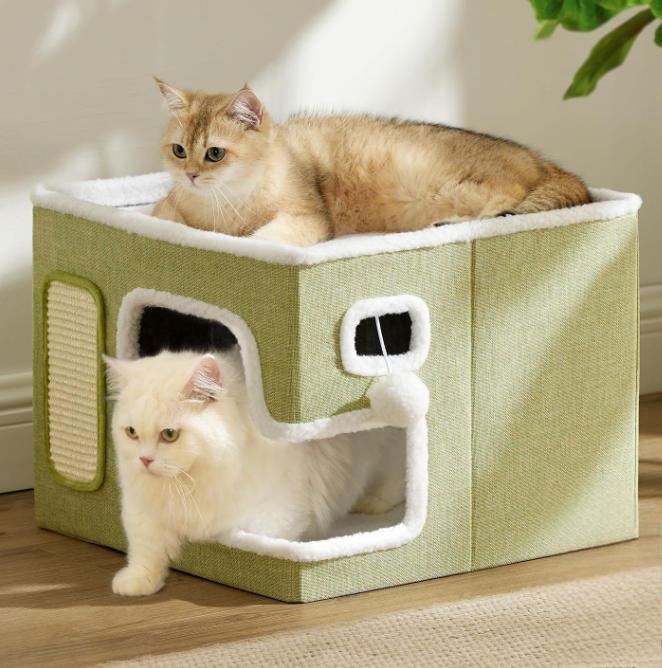 Foldable Cat House 2 Layer Large Soft Cat Cave with Scratch Board and Fluffy Ball