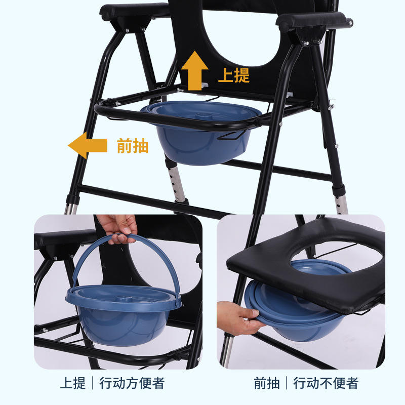 Foldable Commode Chair Adjustable Height 5 Levels Portable Toilet For Elderly And Pregnant Women Hospital Use