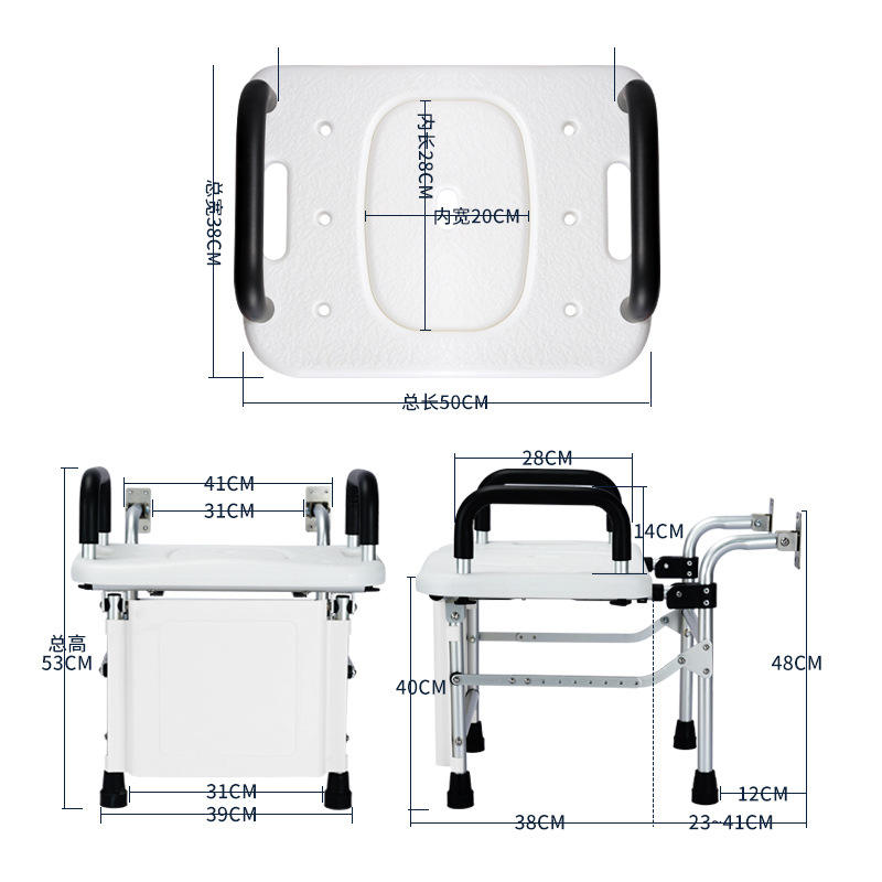Foldable Commode Chair With Armrests 50Cm Length Anti Slip Toilet Seat For Elderly And Pregnant Women