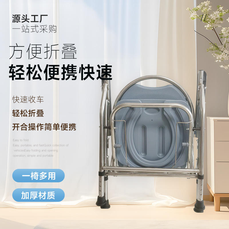 Foldable Commode Chair With Bucket For Elderly Pregnant Disabled Home Use Portable Toilet Seat Multifunctional Design