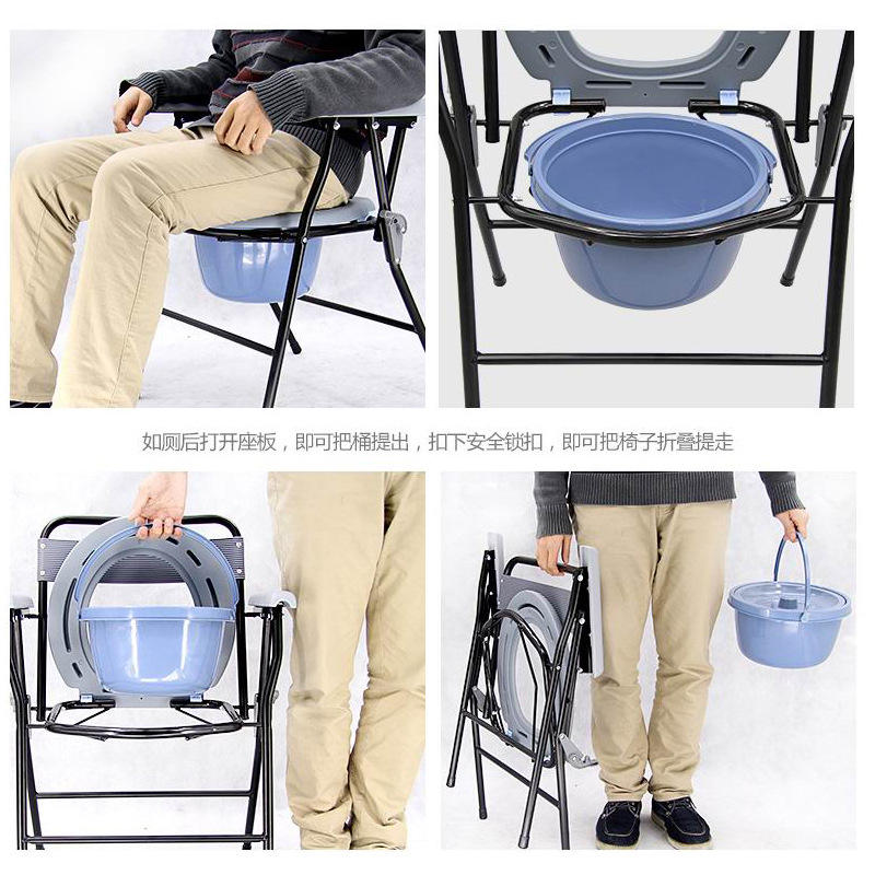 Foldable Commode Chair With Round Seat And Lid Portable Toilet For Elderly And Pregnant Women Anti Slip Design