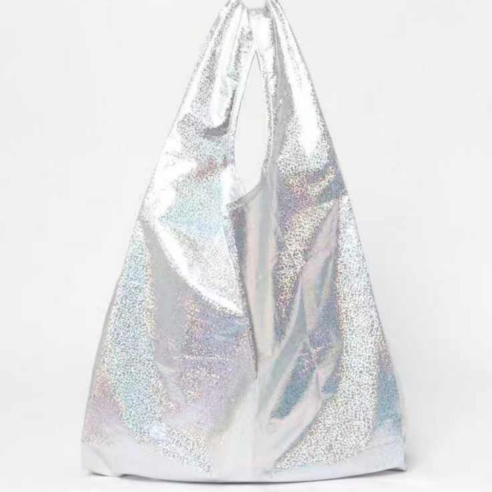 Foldable Eco-friendly Shopping Bag Metal Houndstooth Portable Shrinkable Storage Bag for Women