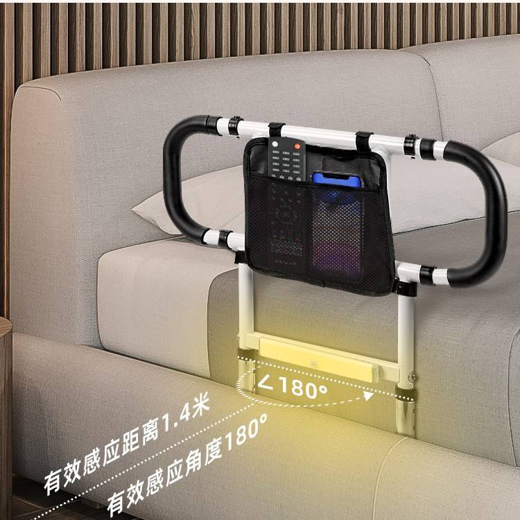 Foldable Height Adjustable Bedside Handrail With Motion Sensor Light For Seniors White 54.6 Cm No Drilling Required