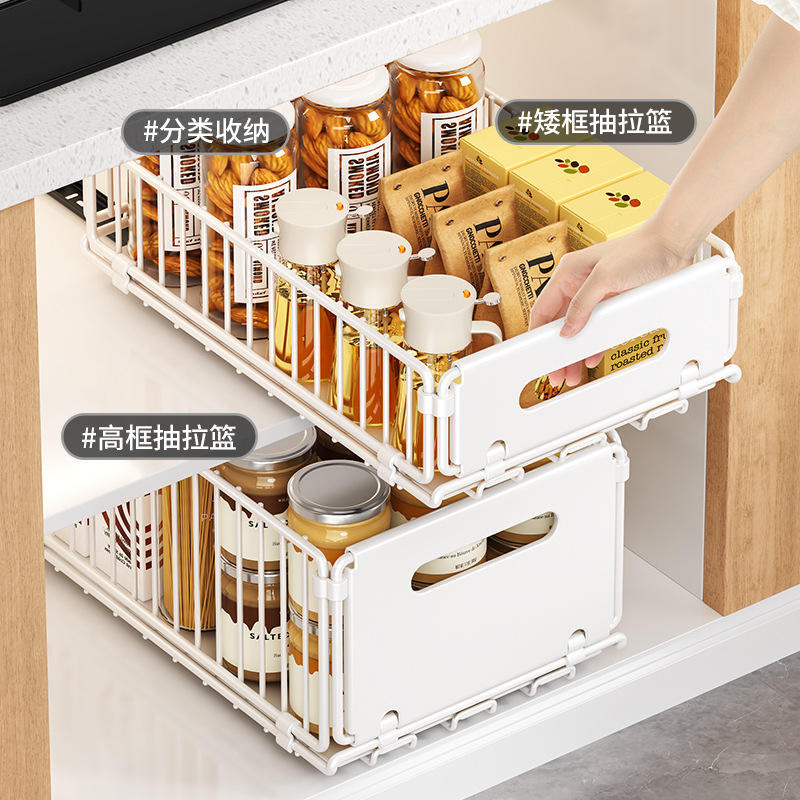 Foldable Kitchen Pull-Out Storage Rack Rectangular Multi-Purpose Cabinet Organizer Deep Basket Tiered Spice Rack