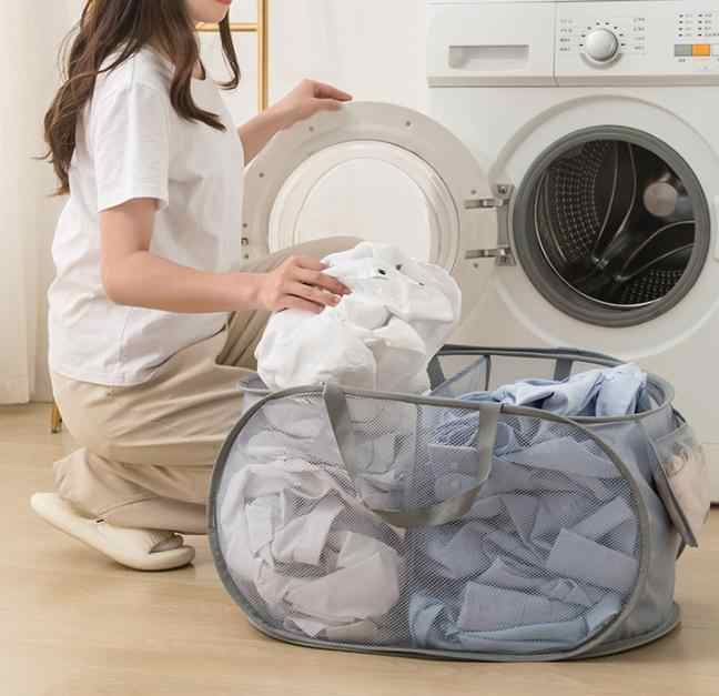 Foldable Laundry Basket Mesh Light Weight Easy to Carry Clothes Hampers for Laundry Dorm Toys Travel Grey