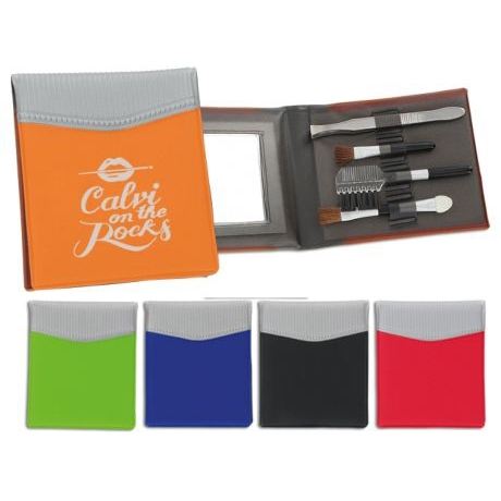 Foldable Leather-Frame Makeup Bag with LED Desktop Mirror Single-Sided Vanity Cosmetic Mirror ABS Finishing