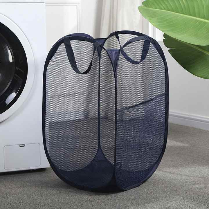 Foldable Mesh Pop-Up Clothes Hamper Nylon Laundry Basket with Frame Home & College Essentials