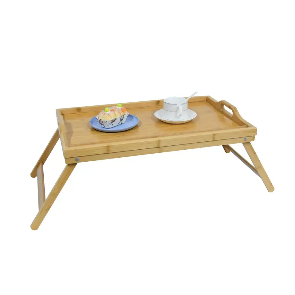 Foldable Nature Bamboo Breakfast Bed Table Phone Holder Laptop Bed Tray Table With Handle and Folding Legs