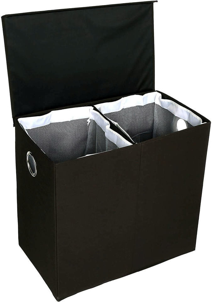 Foldable Oxford Fabric Laundry Storage Basket Lid Iron Handles Collapsible Clothing Organizer for Bathroom Living Room Cardboard